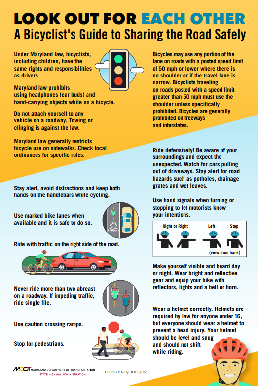 Test your knowledge or learn the do’s and don’t’s of cycling in Maryland.